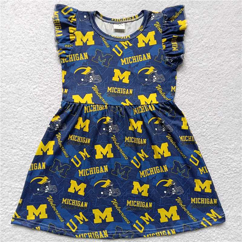 Yellow M letter dark blue flying sleeve dress 黄色M字母深蓝色飞袖裙